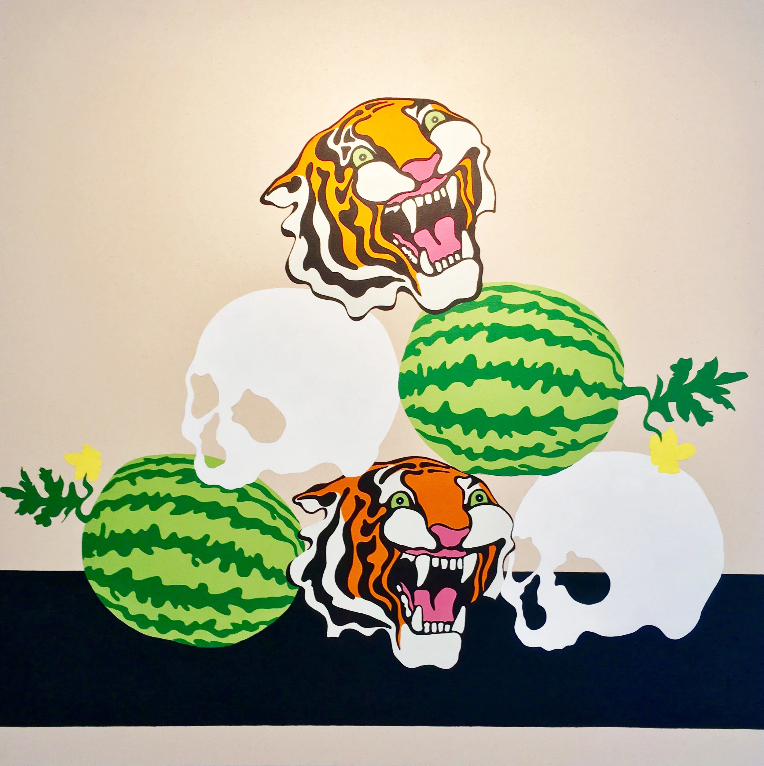"Still Life with Skulls and Watermelons"