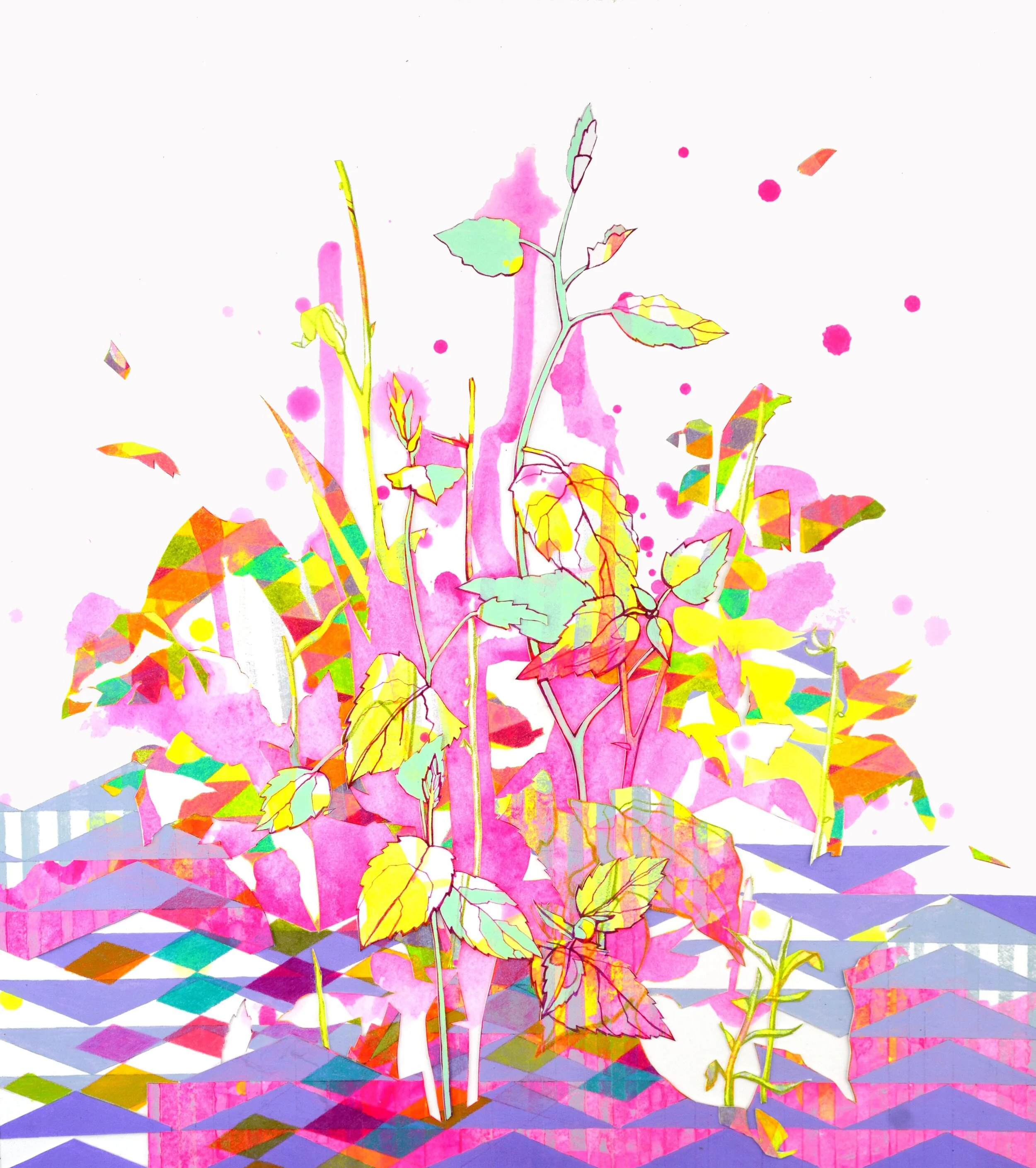 SUMMER RUSH is a dual-gallery, all female group exhibition at James Oliver Gallery & HOT•BED, featuring a variety of local, national, and international female contemporary artists. Summer Rush was curated by and took place at James Oliver Gallery as well as their sister gallery HOT•BED, where custom horticulture by Bryan Hoffman will accentuate the organic feel and intense color pallets of this show. The incredible line-up includes a diverse array of works by artists: Michele Kishita, M.K. Komins, Elizabeth Bergeland, Nat Girsberger, Alicia LaChance, Juliet Sugg, Kristen Reichert, Caitlyn Grabenstein, Molly Goldfarb, Ekaterina Popova, Erica Bello, Katelyn Liepins, and Nikki Painter. The scope of media includes abstract, surreal and hyper-realistic painting, collage, illustration, jewelry, and much, much more. Summer Rush magnified the entropy of the season and eviscerate a notion of excitement and activity brewing and cultivating in our spaces.